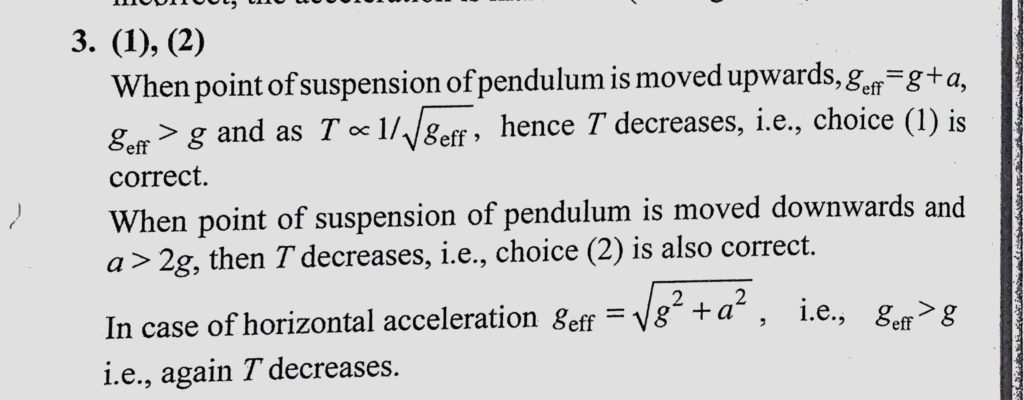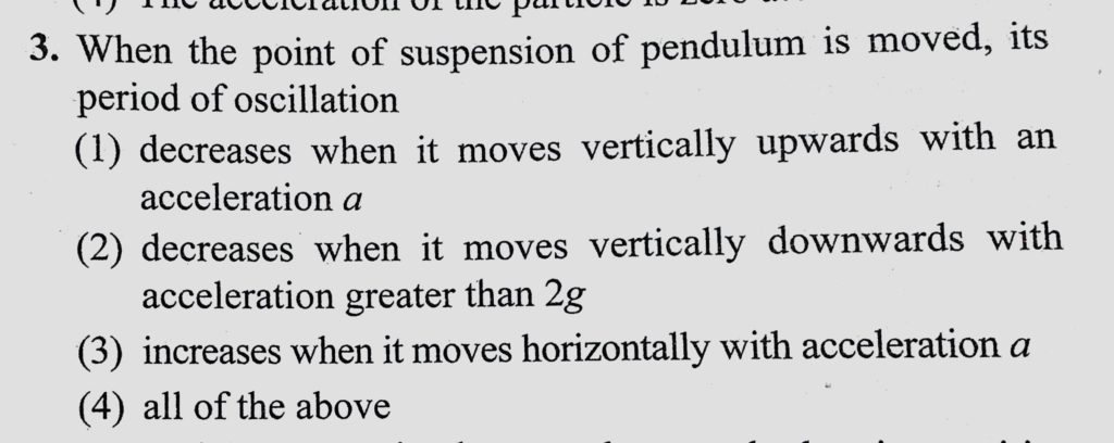 When the point of suspension of pendulum is moved, its period of oscillation (1) decreases when it moves vertically upwards with an acceleration a its period of oscillation (1) decreases when it moves vertically upwards with an acceleration a When the point of suspension of pendulum is moved October 31, 2020 Category: Uncategorised (JEE Advanced Physics by BM Sharma + GMP Solutions) , Facebook Messenger WhatsApp Share this:TwitterFacebook Related