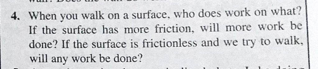 When you walk on a surface, who does work on what ? If the surface has more friction, will more work be done? If the surface is frictionless and we try to walk, will any work be done? When you walk on a surface who does work on what ? If the surface has more friction will any work be done? will more work be done? If the surface is frictionless and we try to walk October 2, 2020 Category: Uncategorised (JEE Advanced Physics by BM Sharma + GMP Solutions) , Facebook Messenger WhatsApp Share this:TwitterFacebook Related