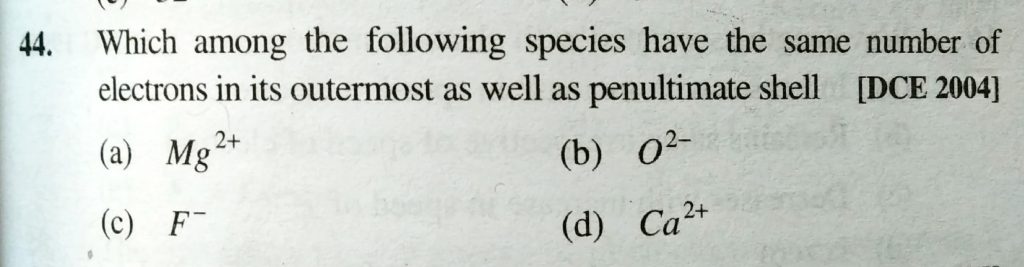 Which among the following species have the same number of electrons in its outermost as well as penultimate shell Which among the following species have the same number of electrons in its outermost as well as penultimate shell November 26, 2020 Category: Uncategorised (JEE Advanced Physics by BM Sharma + GMP Solutions) , Facebook Messenger WhatsApp Share this:TwitterFacebook Related