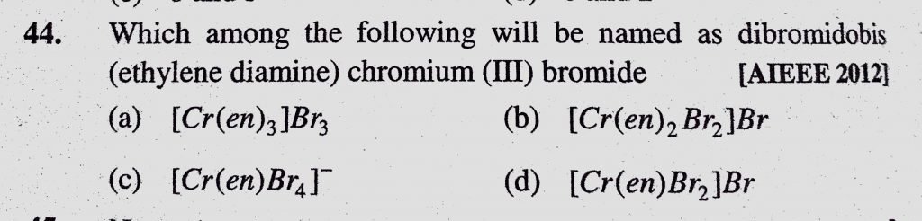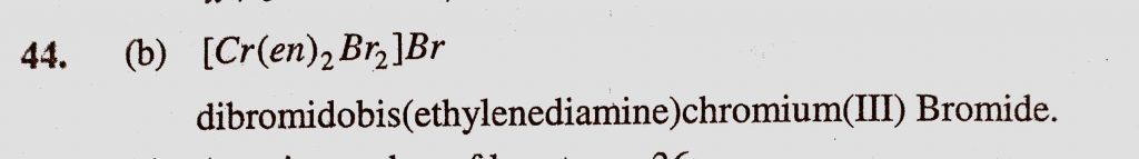 Which among the following will be named as dibromidobis (ethylene diamine) chromium (III) bromide Which among the following will be named as dibromidobis (ethylene diamine) chromium (III) bromide December 4, 2020 Category: Uncategorised (JEE Advanced Physics by BM Sharma + GMP Solutions) , Facebook Messenger WhatsApp Share this:TwitterFacebook Related