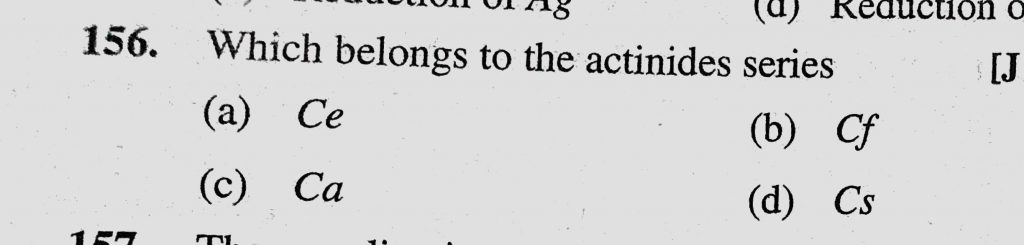 Which belongs to the actinides series (a) Ce (b) Cf (c) Ca (d) Cs Which belongs to the actinides series (a) Ce (b) Cf (c) Ca (d) Cs November 30, 2020 Category: Uncategorised (JEE Advanced Physics by BM Sharma + GMP Solutions) , Facebook Messenger WhatsApp Share this:TwitterFacebook Related