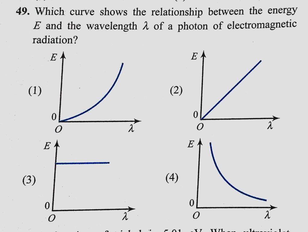 Which curve shows the releationship between the energy E and the wavelength lemda of a photon of electromagnetic radiation? Which curve shows the releationship between the energy E and the wavelength lemda of a photon of electromagnetic radiation? October 14, 2020 Category: Uncategorised (JEE Advanced Physics by BM Sharma + GMP Solutions) , Facebook Messenger WhatsApp Share this:TwitterFacebook Related