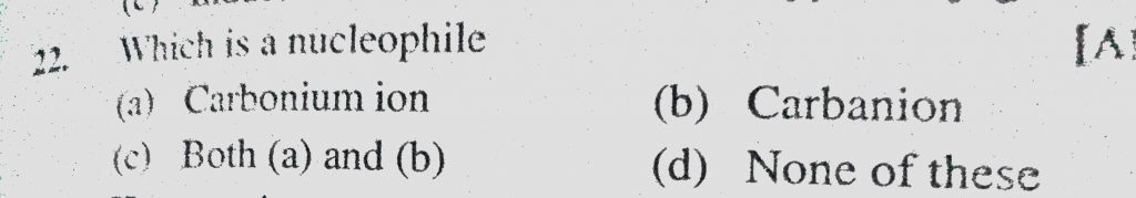 Which is a nucleophile (a) Carbonium ion (b) Carbanion (c) Both (a) and (b) (d) None of these Which is a nucleophile (a) Carbonium ion (b) Carbanion (c) Both (a) and (b) (d) None of these December 9, 2020 Category: Uncategorised (JEE Advanced Physics by BM Sharma + GMP Solutions) , Facebook Messenger WhatsApp Share this:TwitterFacebook Related