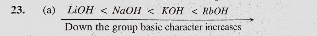 Which is most basic in character (a) RbOH (b) KOH (c) NaOH (d) LiOH Which is most basic in character (a) RbOH (b) KOH (c) NaOH (d) LiOH November 13, 2020 Category: Uncategorised (JEE Advanced Physics by BM Sharma + GMP Solutions) , Facebook Messenger WhatsApp Share this:TwitterFacebook Related