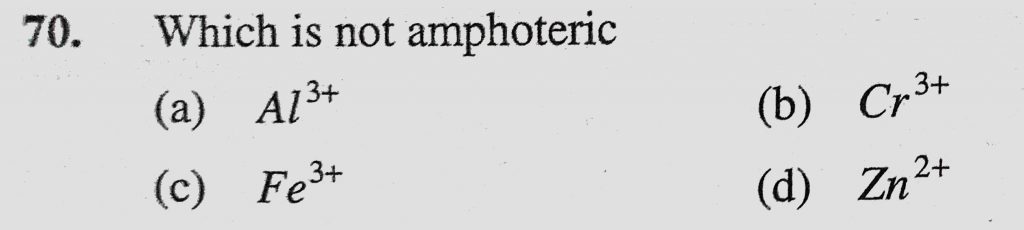 Which is not amphoteric (a) Al 3+ (b) Cr 3+ (c) Fe 3+ (d) Zn 2+ Which is not amphoteric (a) Al 3+ (b) Cr 3+ (c) Fe 3+ (d) Zn 2+ November 30, 2020 Category: Uncategorised (JEE Advanced Physics by BM Sharma + GMP Solutions) , Facebook Messenger WhatsApp Share this:TwitterFacebook Related