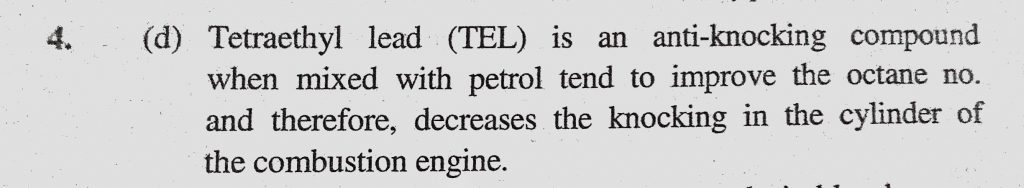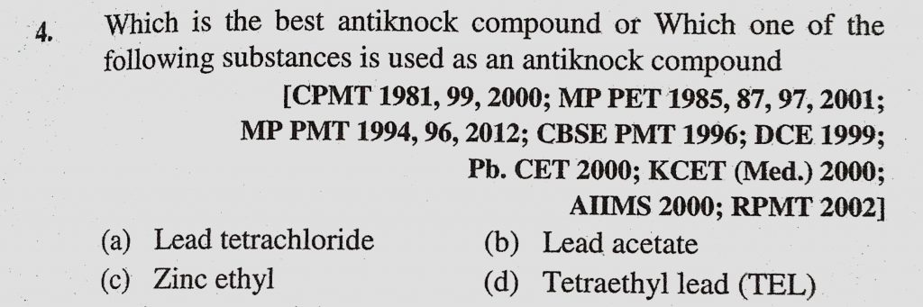 Which is the best antiknock compound or which one of the following substances is used as an antiknock compound (a) Lead tetrachloride (b) Lead acetate Which is the best antiknock compound or which one of the following substances is used as an antiknock compound (a) Lead tetrachloride (b) Lead acetate December 12, 2020 Category: Uncategorised (JEE Advanced Physics by BM Sharma + GMP Solutions) , Facebook Messenger WhatsApp Share this:TwitterFacebook Related