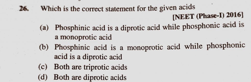 Which is the correct statement for the given acids (a) Phosphinic acid is a diprotic acid while phosphonic acid is a monoprotic acid Which is the correct statement for the given acids (a) Phosphinic acid is a diprotic acid while phosphonic acid is a monoprotic acid November 18, 2020 Category: Uncategorised (JEE Advanced Physics by BM Sharma + GMP Solutions) , Facebook Messenger WhatsApp Share this:TwitterFacebook Related