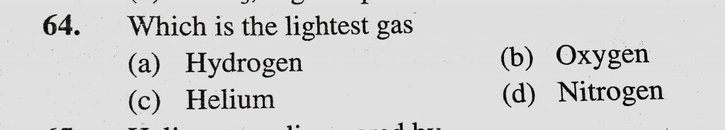 Which is the lightest gas (a) Hydrogen (b) Oxygen (c) Helium (d) Nitrogen Which is the lightest gas (a) Hydrogen (b) Oxygen (c) Helium (d) Nitrogen November 25, 2020 Category: Uncategorised (JEE Advanced Physics by BM Sharma + GMP Solutions) , Facebook Messenger WhatsApp Share this:TwitterFacebook Related