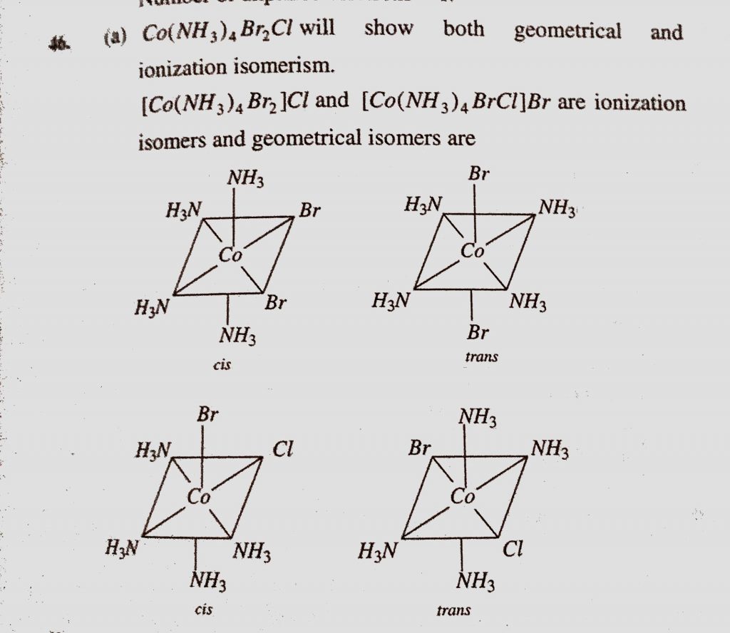 Which kind of isomerism is exhibited by octahedral Co(NH3)4Br2Cl (a) Geometrical and ionization (b) Geometrical and Optical Which kind of isomerism is exhibited by octahedral Co(NH3)4Br2Cl (a) Geometrical and ionization (b) Geometrical and Optical December 5, 2020 Category: Uncategorised (JEE Advanced Physics by BM Sharma + GMP Solutions) , Facebook Messenger WhatsApp Share this:TwitterFacebook Related