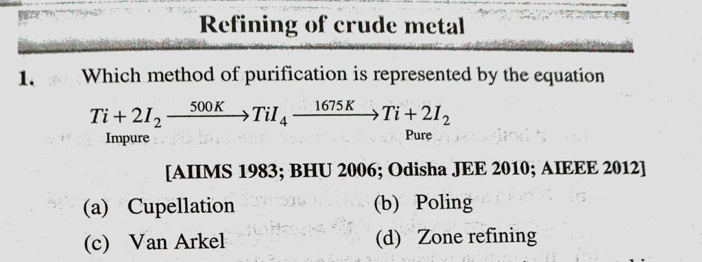 Which method of purification is represented by the equation Ti + 2I2 to TiI4 to Ti + 2I2 Which method of purification is represented by the equation Ti + 2I2 to TiI4 to Ti + 2I2 November 12, 2020 Category: Uncategorised (JEE Advanced Physics by BM Sharma + GMP Solutions) , Facebook Messenger WhatsApp Share this:TwitterFacebook Related