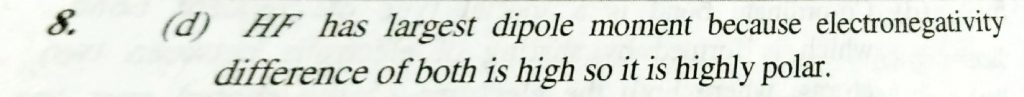 Which molecule has the largest dipole moment (a) HCL (b) HI (c0 HBr (d) HF Which molecule has the largest dipole moment (a) HCL (b) HI (c0 HBr (d) HF December 2, 2020 Category: Uncategorised (JEE Advanced Physics by BM Sharma + GMP Solutions) , Facebook Messenger WhatsApp Share this:TwitterFacebook Related