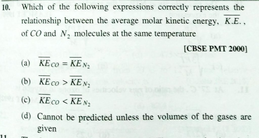Which of teh following expression correctly represents the relationship between the average moalr kinetic energy, K.E., of CO and N2 molecules at the same temperature K.E. of CO and N2 molecules at the same temperature Which of teh following expression correctly represents the relationship between the average moalr kinetic energy February 11, 2021 Category: Uncategorised (JEE Advanced Physics by BM Sharma + GMP Solutions) , Facebook Messenger WhatsApp Share this:TwitterFacebook Related