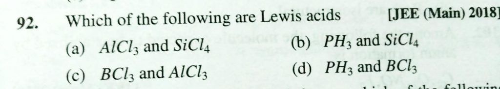 Which of the following are Lewis acids (a) ALCL3 and SiCL4 (b) PH3 and SiCL4 (c) BCL3 and ALCL3 (d) PH3 and BCL3 Which of the following are Lewis acids (a) ALCL3 and SiCL4 (b) PH3 and SiCL4 (c) BCL3 and ALCL3 (d) PH3 and BCL3 December 10, 2020 Category: Uncategorised (JEE Advanced Physics by BM Sharma + GMP Solutions) , Facebook Messenger WhatsApp Share this:TwitterFacebook Related