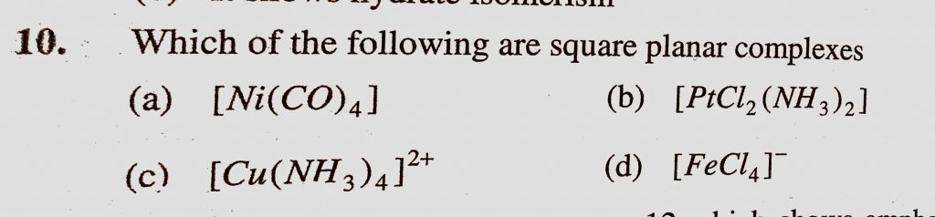 Which of the following are square planar complexes (a) (Ni(CO)4) (b) (PtCl2(NH32) (c) (Cu(NH3)4)2+ Which of the following are square planar complexes (a) (Ni(CO)4) (b) (PtCl2(NH32) (c) (Cu(NH3)4)2+ December 6, 2020 Category: Uncategorised (JEE Advanced Physics by BM Sharma + GMP Solutions) , Facebook Messenger WhatsApp Share this:TwitterFacebook Related