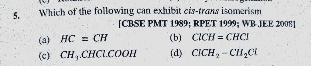 Which of the following can exhibit cis-trans isomerism (a) HC =- CH (b) ClCH = CHCl Which of the following can exhibit cis-trans isomerism (a) HC =- CH (b) ClCH = CHCl December 10, 2020 Category: Uncategorised (JEE Advanced Physics by BM Sharma + GMP Solutions) , Facebook Messenger WhatsApp Share this:TwitterFacebook Related