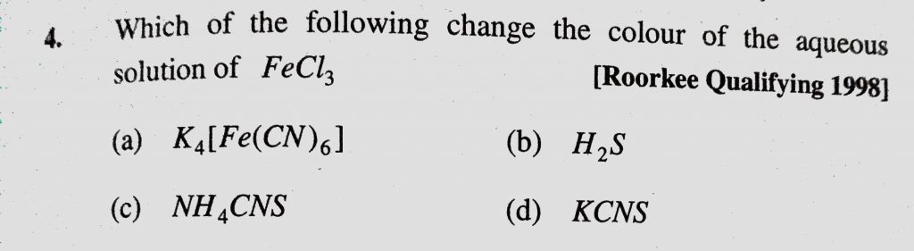 Which of the following change the colour of the aqueous solution of FeCl3 Which of the following change the colour of the aqueous solution of FeCl3 December 8, 2020 Category: Uncategorised (JEE Advanced Physics by BM Sharma + GMP Solutions) , Facebook Messenger WhatsApp Share this:TwitterFacebook Related