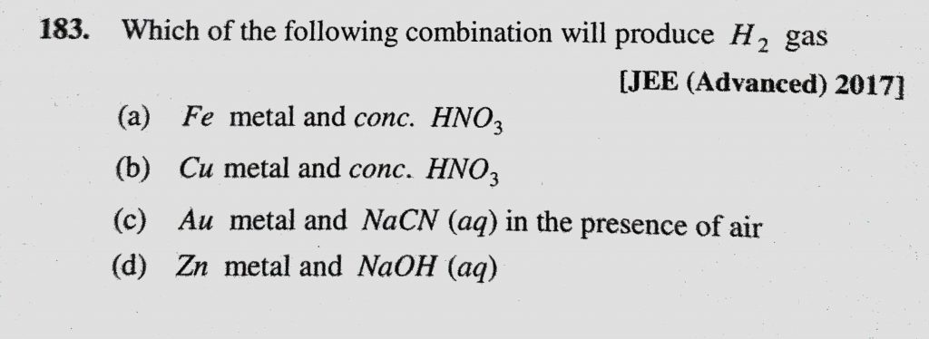 Which of the following combination will produce H2 gas (a) Fe metal and conc. HNO3 (b) Cu metal and conc. HNO3 Which of the following combination will produce H2 gas (a) Fe metal and conc. HNO3 (b) Cu metal and conc. HNO3 November 28, 2020 Category: Uncategorised (JEE Advanced Physics by BM Sharma + GMP Solutions) , Facebook Messenger WhatsApp Share this:TwitterFacebook Related