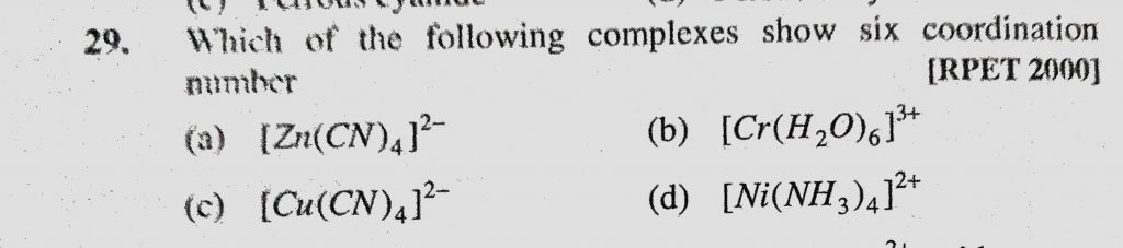 Which of the following complexes show six coordination number (a) (Zn(CN)4 ) 2- (b) (Cr (H2O)6 ) 3+ Which of the following complexes show six coordination number (a) (Zn(CN)4 ) 2- (b) (Cr (H2O)6 ) 3+ December 3, 2020 Category: Uncategorised (JEE Advanced Physics by BM Sharma + GMP Solutions) , Facebook Messenger WhatsApp Share this:TwitterFacebook Related