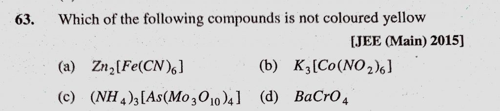 Which of the following compounds is not coloured yellow (a) Zn2(Fe(CN)6) (b) K3 (Co(NO2)6) Which of the following compounds is not coloured yellow (a) Zn2(Fe(CN)6) (b) K3 (Co(NO2)6) December 5, 2020 Category: Uncategorised (JEE Advanced Physics by BM Sharma + GMP Solutions) , Facebook Messenger WhatsApp Share this:TwitterFacebook Related