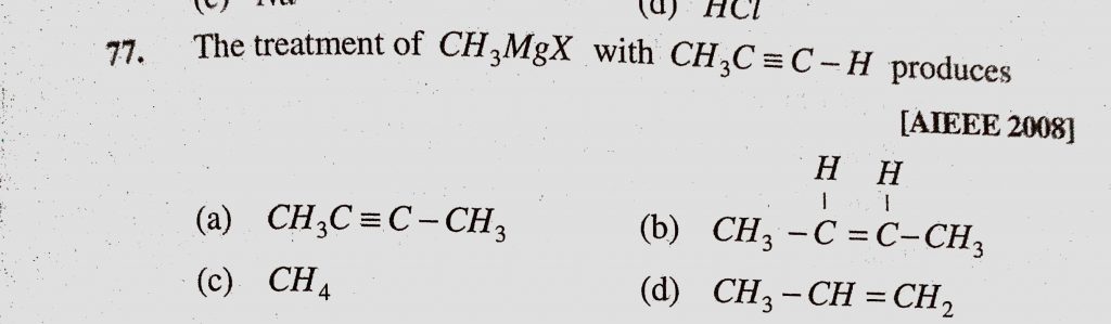 The treatment of CH3MgX with CH3C ≡ C – H produces The treatment of CH3MgX with CH3C ≡ C – H produces December 14, 2020 Category: Uncategorised (JEE Advanced Physics by BM Sharma + GMP Solutions) , Facebook Messenger WhatsApp Share this:TwitterFacebook Related