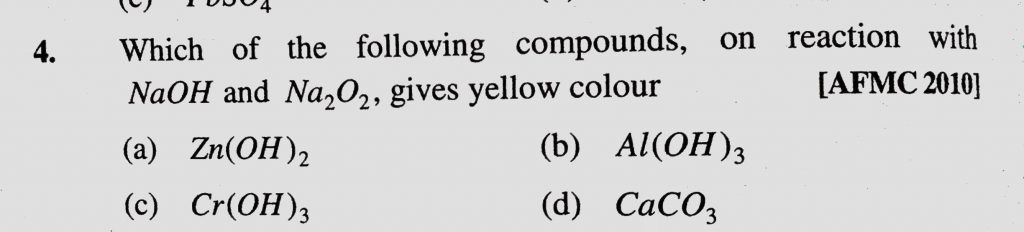 Which of the following compounds, on reaction with NaOH and Na2O2, gives yellow colour (a) Zn(OH)2 (b) Al(OH)3 gives yellow colour (a) Zn(OH)2 (b) Al(OH)3 on reaction with NaOH and Na2O2 Which of the following compounds December 7, 2020 Category: Uncategorised (JEE Advanced Physics by BM Sharma + GMP Solutions) , Facebook Messenger WhatsApp Share this:TwitterFacebook Related