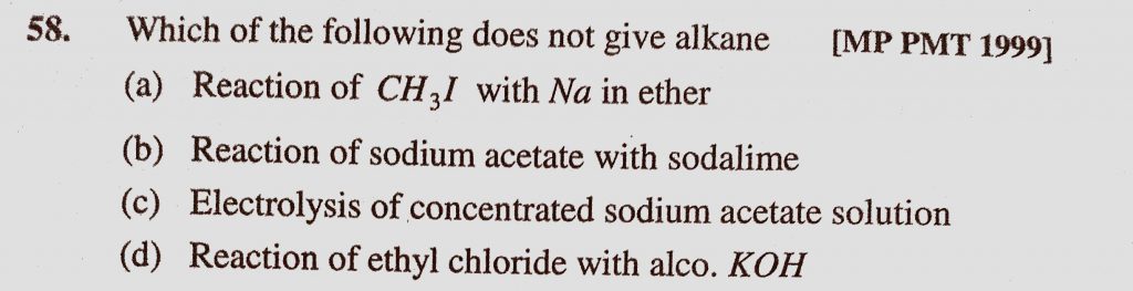 Which of the following does not give alkane (a) Reaction of CH3I with Na in ether (b) Reaction of sodium acetate with sodalime Which of the following does not give alkane (a) Reaction of CH3I with Na in ether (b) Reaction of sodium acetate with sodalime December 12, 2020 Category: Uncategorised (JEE Advanced Physics by BM Sharma + GMP Solutions) , Facebook Messenger WhatsApp Share this:TwitterFacebook Related