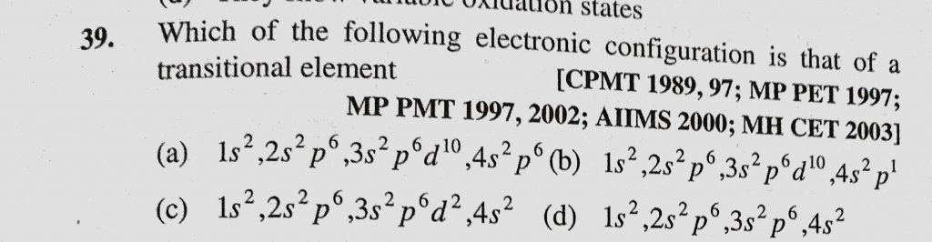 Which of the following electronic configuration is that of a transitional element (a) 1s2,2s2p6,3s2p6d10,4s2p6 2s2p6 3s2p6d10 4s2p6 Which of the following electronic configuration is that of a transitional element (a) 1s2 November 29, 2020 Category: Uncategorised (JEE Advanced Physics by BM Sharma + GMP Solutions) , Facebook Messenger WhatsApp Share this:TwitterFacebook Related