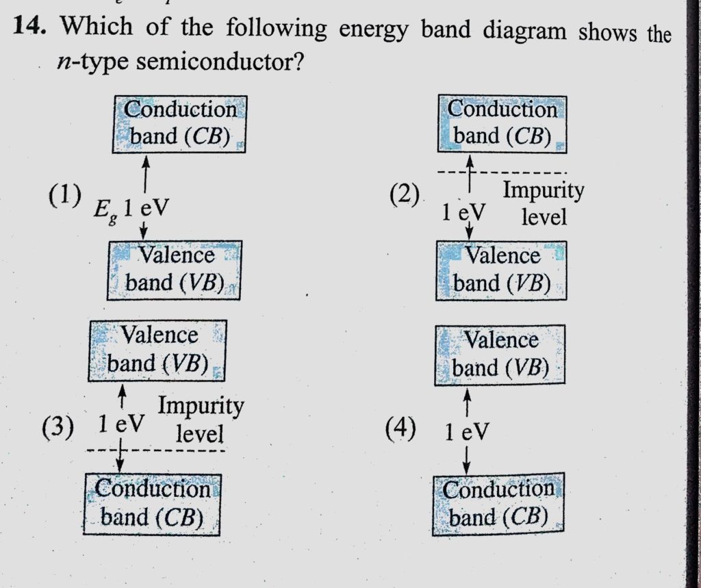 Which of the following energy band diagram shows the n-type semiconductor ? Which of the following energy band diagram shows the n-type semiconductor ? October 21, 2020 Category: Uncategorised (JEE Advanced Physics by BM Sharma + GMP Solutions) , Facebook Messenger WhatsApp Share this:TwitterFacebook Related