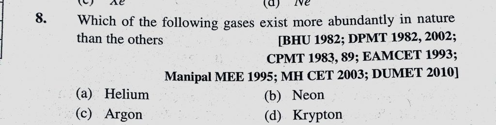 Which of the following gasses exist more abundantly in nature than the others (a) Helium (b) Neon Which of the following gasses exist more abundantly in nature than the others (a) Helium (b) Neon November 25, 2020 Category: Uncategorised (JEE Advanced Physics by BM Sharma + GMP Solutions) , Facebook Messenger WhatsApp Share this:TwitterFacebook Related