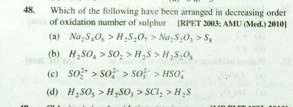Which of the following have been arranged in decreasing order of oxidation number of sulphur Which of the following have been arranged in decreasing order of oxidation number of sulphur November 24, 2020 Category: Uncategorised (JEE Advanced Physics by BM Sharma + GMP Solutions) , Facebook Messenger WhatsApp Share this:TwitterFacebook Related