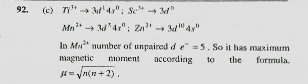Which of the following ions has the highest magnetic moment (a) Ti 3+ (b) Sc 3+ (c) Mn 2+ (d) Zn 2+ Which of the following ions has the highest magnetic moment (a) Ti 3+ (b) Sc 3+ (c) Mn 2+ (d) Zn 2+ November 30, 2020 Category: Uncategorised (JEE Advanced Physics by BM Sharma + GMP Solutions) , Facebook Messenger WhatsApp Share this:TwitterFacebook Related