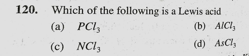 Which of the following is a Lewis acid (a) PCl3 (b) AlCl3 (c) NCl3 (d) AsCl3 Which of the following is a Lewis acid (a) PCl3 (b) AlCl3 (c) NCl3 (d) AsCl3 November 24, 2020 Category: Uncategorised (JEE Advanced Physics by BM Sharma + GMP Solutions) , Facebook Messenger WhatsApp Share this:TwitterFacebook Related