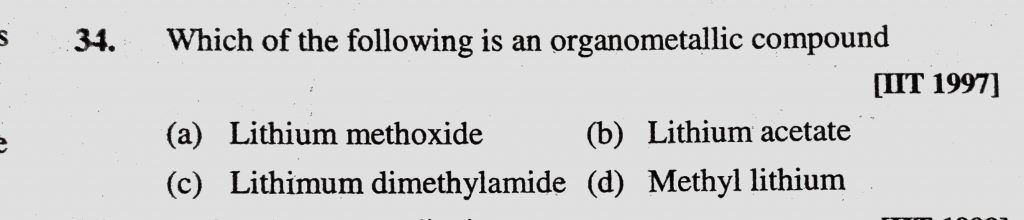 Which of the following is an organometallic compound (a) Lithium methoxide (b) Lithium acetate (c) Lithimum dimethylamide Which of the following is an organometallic compound (a) Lithium methoxide (b) Lithium acetate (c) Lithimum dimethylamide December 5, 2020 Category: Uncategorised (JEE Advanced Physics by BM Sharma + GMP Solutions) , Facebook Messenger WhatsApp Share this:TwitterFacebook Related