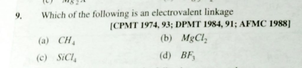 Which of the following is an electrovalent linkage (a) CH4 (b) MgCl2 (c) SiCl4 (d) BF3 Which of the following is an electrovalent linkage (a) CH4 (b) MgCl2 (c) SiCl4 (d) BF3 December 1, 2020 Category: Uncategorised (JEE Advanced Physics by BM Sharma + GMP Solutions) , Facebook Messenger WhatsApp Share this:TwitterFacebook Related
