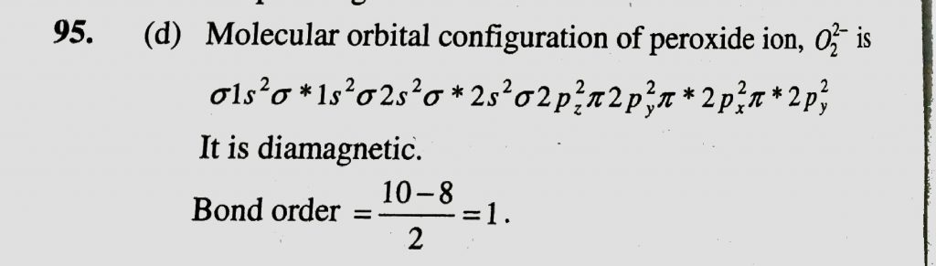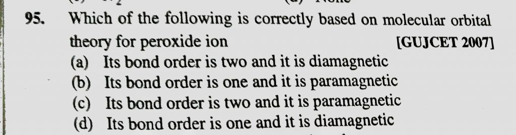 Which of the following is correctly on molecular orbital theory for peroxide ion Which of the following is correctly on molecular orbital theory for peroxide ion December 8, 2020 Category: Uncategorised (JEE Advanced Physics by BM Sharma + GMP Solutions) , Facebook Messenger WhatsApp Share this:TwitterFacebook Related