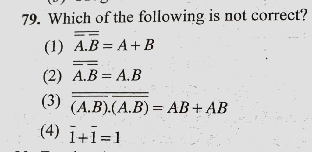 Which of the following is not correct ? (1) A.B = A + B (2) A.B = A.B Which of the following is not correct ? (1) A.B = A + B (2) A.B = A.B October 22, 2020 Category: Uncategorised (JEE Advanced Physics by BM Sharma + GMP Solutions) , Facebook Messenger WhatsApp Share this:TwitterFacebook Related