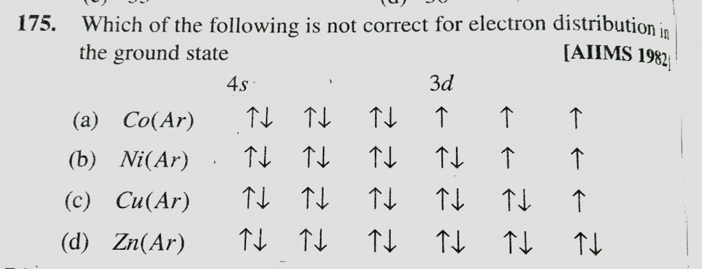 Which of the following is not correct for electron distribution in the ground state (a) Co(Ar) (b) Ni (Ar) (c) Cu (Ar ) (d) Zn(Ar ) Which of the following is not correct for electron distribution in the ground state (a) Co(Ar) (b) Ni (Ar) (c) Cu (Ar ) (d) Zn(Ar ) November 29, 2020 Category: Uncategorised (JEE Advanced Physics by BM Sharma + GMP Solutions) , Facebook Messenger WhatsApp Share this:TwitterFacebook Related