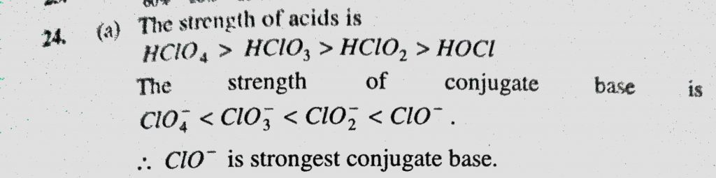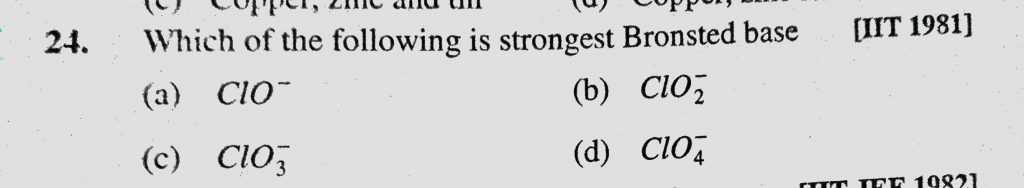 Which of the following is strongest Bronsted base (a) ClO – (b) ClO2 – (c) ClO3 – (d) ClO4 – Which of the following is strongest Bronsted base (a) ClO - (b) ClO2 - (c) ClO3 - (d) ClO4 - December 2, 2020 Category: Uncategorised (JEE Advanced Physics by BM Sharma + GMP Solutions) , Facebook Messenger WhatsApp Share this:TwitterFacebook Related
