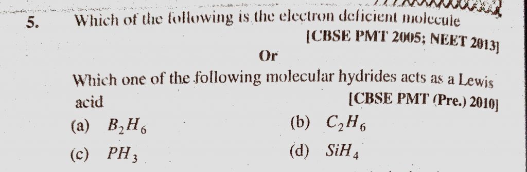 Which of the following is the electron deficient molecule Or Which one of the following molecule hydrides acts as a Lewis acid Which of the following is the electron deficient molecule Or Which one of the following molecule hydrides acts as a Lewis acid November 17, 2020 Category: Uncategorised (JEE Advanced Physics by BM Sharma + GMP Solutions) , Facebook Messenger WhatsApp Share this:TwitterFacebook Related