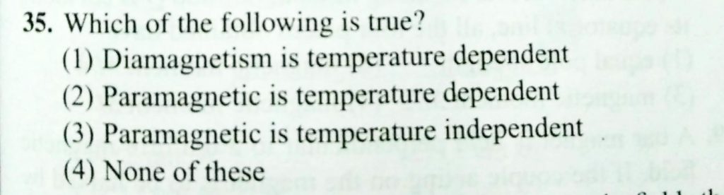 Which of the following is true ? (1) Diaamagnetism is temperature dependent Which of the following is true ? (1) Diaamagnetism is temperature dependent October 18, 2020 Category: Uncategorised (JEE Advanced Physics by BM Sharma + GMP Solutions) , Facebook Messenger WhatsApp Share this:TwitterFacebook Related