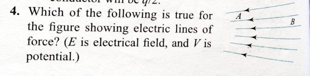 Which of the following is true for the figure showing electric lines of force ? ( E is electrical field , and v is potential ). and v is potential ). Which of the following is true for the figure showing electric lines of force ? ( E is electrical field November 6, 2020 Category: Uncategorised (JEE Advanced Physics by BM Sharma + GMP Solutions) , Facebook Messenger WhatsApp Share this:TwitterFacebook Related