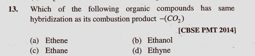 Which of the following organic compounds has same hybirdization as its combustion product – (CO2) (a) Ethene (b) Ethanol (c) Ethane (d) Ethyne Which of the following organic compounds has same hybirdization as its combustion product - (CO2) (a) Ethene (b) Ethanol (c) Ethane (d) Ethyne December 14, 2020 Category: Uncategorised (JEE Advanced Physics by BM Sharma + GMP Solutions) , Facebook Messenger WhatsApp Share this:TwitterFacebook Related