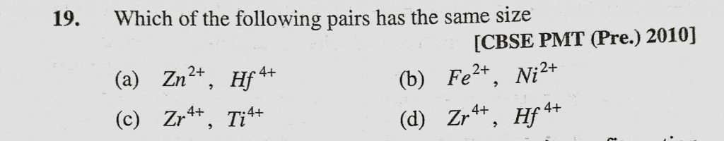Which of the following pairs has the same size (a) Zn 2+, Hf 4+ (b) Fe 2+ , Ni 2+ Hf 4+ (b) Fe 2+ Ni 2+ Which of the following pairs has the same size (a) Zn 2+ November 29, 2020 Category: Uncategorised (JEE Advanced Physics by BM Sharma + GMP Solutions) , Facebook Messenger WhatsApp Share this:TwitterFacebook Related