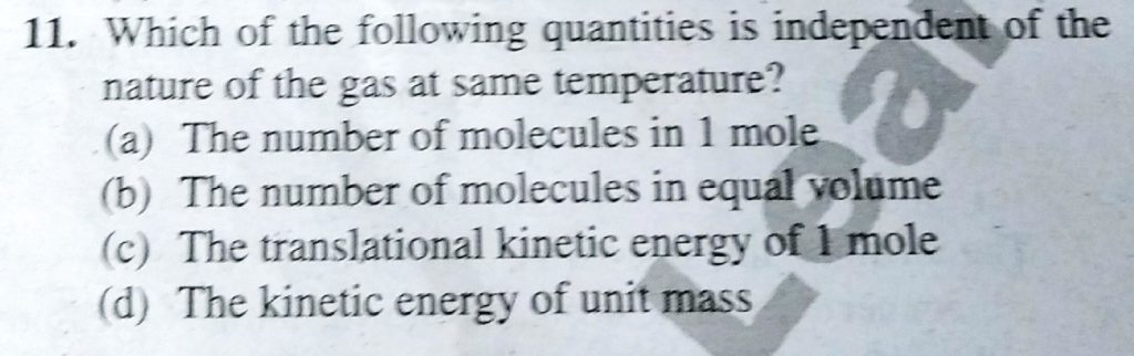 Which of the following quantities is independent of the nature of the gas at same temperature ? Which of the following quantities is independent of the nature of the gas at same temperature ? October 5, 2020 Category: Uncategorised (JEE Advanced Physics by BM Sharma + GMP Solutions) , Facebook Messenger WhatsApp Share this:TwitterFacebook Related