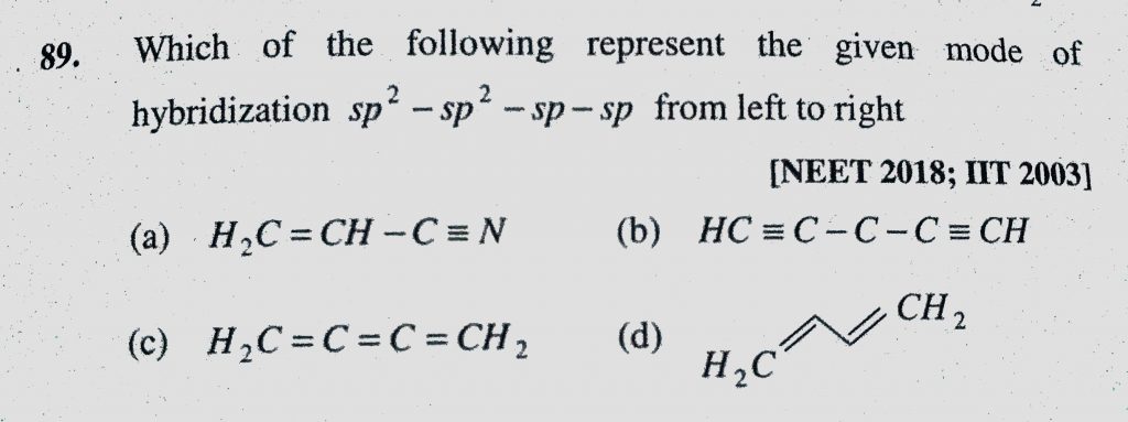 Which of the following represent the given mode of hybridization sp2-sp2-sp-sp from left to right Which of the following represent the given mode of hybridization sp2-sp2-sp-sp from left to right December 11, 2020 Category: Uncategorised (JEE Advanced Physics by BM Sharma + GMP Solutions) , Facebook Messenger WhatsApp Share this:TwitterFacebook Related