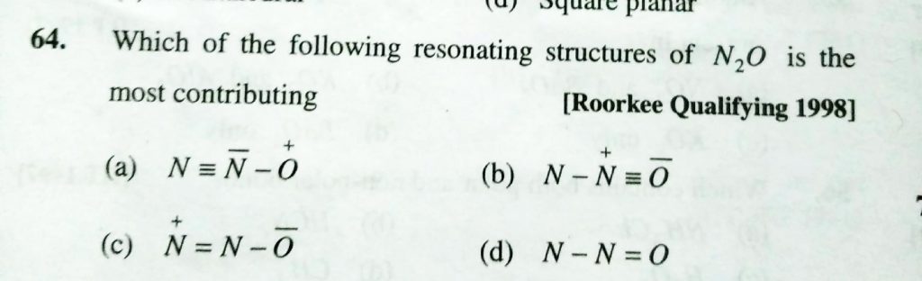 Which of the following resonationg structures of N2O is teh most contributing Which of the following resonationg structures of N2O is teh most contributing December 9, 2020 Category: Uncategorised (JEE Advanced Physics by BM Sharma + GMP Solutions) , Facebook Messenger WhatsApp Share this:TwitterFacebook Related