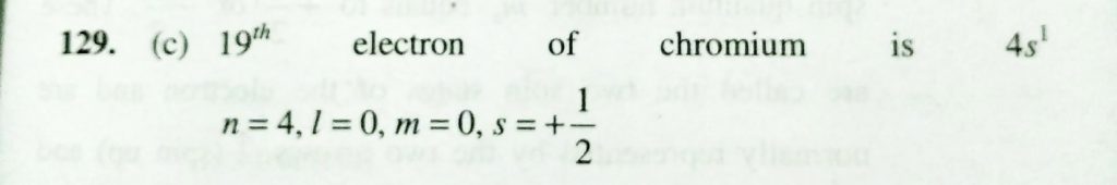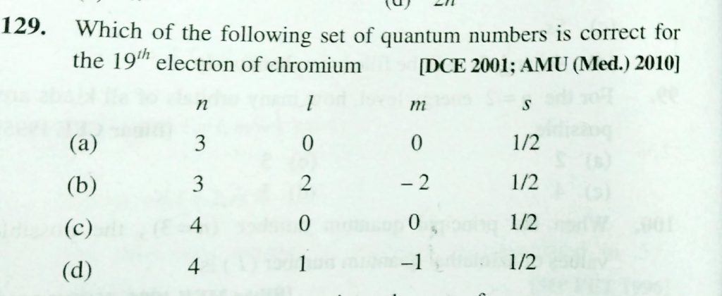 Which of the following set of quantum numbers is correct for the 19th electron of chromium Which of the following set of quantum numbers is correct for the 19th electron of chromium November 29, 2020 Category: Uncategorised (JEE Advanced Physics by BM Sharma + GMP Solutions) , Facebook Messenger WhatsApp Share this:TwitterFacebook Related