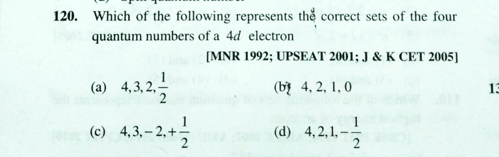 Which of the following represent the correct sets of the four quantum numbers of a 4d electron Which of the following represent the correct sets of the four quantum numbers of a 4d electron November 29, 2020 Category: Uncategorised (JEE Advanced Physics by BM Sharma + GMP Solutions) , Facebook Messenger WhatsApp Share this:TwitterFacebook Related