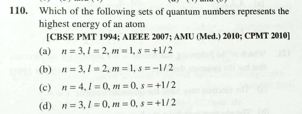 Which of the following sets of quantum numbers represents the highest energy of an atom Which of the following sets of quantum numbers represents the highest energy of an atom November 29, 2020 Category: Uncategorised (JEE Advanced Physics by BM Sharma + GMP Solutions) , Facebook Messenger WhatsApp Share this:TwitterFacebook Related