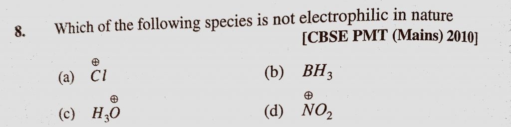 Which of the following species is not electrophilic in nature (a) Cl (b) BH3 (c) H3O (d) NO2 Which of the following species is not electrophilic in nature (a) Cl (b) BH3 (c) H3O (d) NO2 December 9, 2020 Category: Uncategorised (JEE Advanced Physics by BM Sharma + GMP Solutions) , Facebook Messenger WhatsApp Share this:TwitterFacebook Related